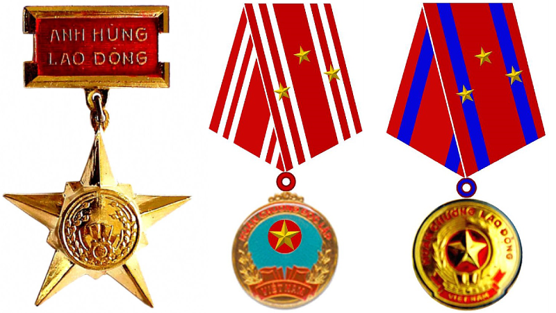 - Huân chương Lao động hạng Nhất, Nhì, Ba.