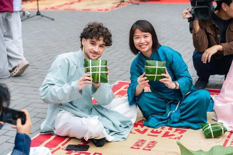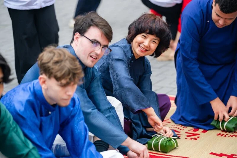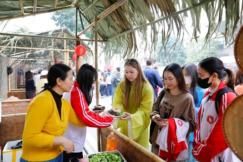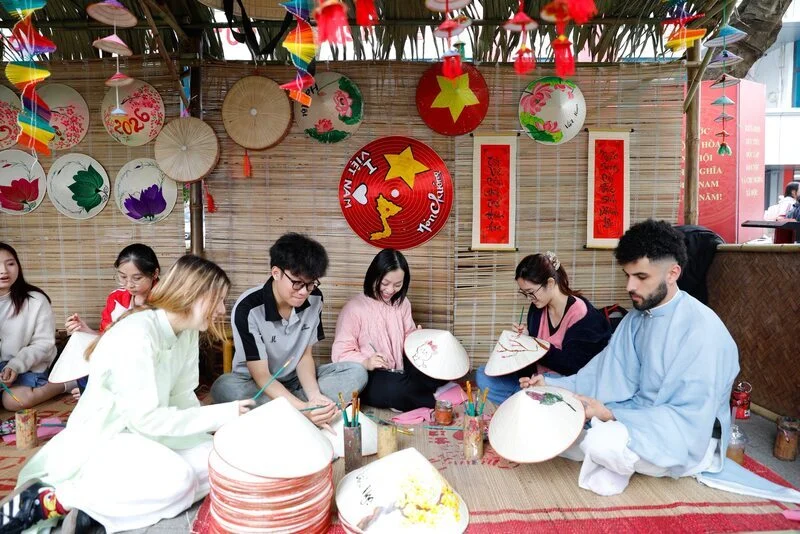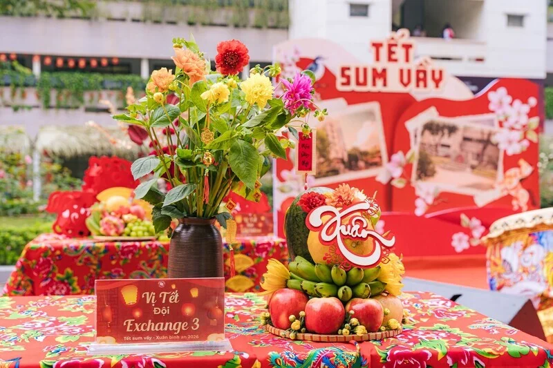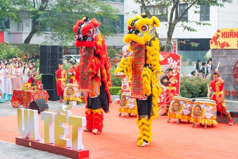 Với chủ đề mang ý nghĩa sâu sắc “Vị Tết”, chương trình như một nhịp cầu lặng lẽ nhưng bền chặt, kết nối những giá trị Tết xưa với hơi thở của Tết nay, gắn kết các thế hệ trong dòng chảy tiếp nối của truyền thống và hiện đại. Điểm nhấn của ngày hội là chuỗi hoạt động văn hóa truyền thống được tái hiện sinh động như: Đánh trống khai hội, múa lân chào mừng, cuộc thi cắm hoa ngày Tết và bày mâm ngũ quả, viết chữ thư pháp, xin chữ ông đồ đầu xuân, tìm hiểu nghệ thuật làm nón lá, xin quẻ đầu năm, khắc dấu gỗ, làm nến thơm, vẽ tranh Đông Hồ, gói và nấu bánh chưng, trải nghiệm các gian hàng ẩm thực mang hương vị ngày Tết. Những góc trải nghiệm không chỉ giúp người tham gia hiểu hơn về phong tục ngày Tết, mà còn trở thành nhịp cầu gắn kết, đặc biệt với các sinh viên quốc tế đến từ nhiều quốc gia như: Pháp, Đức, Nhật, Lào đang tham gia chương trình trao đổi học kỳ này. Nhiều bạn lần đầu diện áo dài, tự tay gói và luộc bánh chưng, hào hứng tìm hiểu ý nghĩa mâm ngũ quả và chia sẻ cảm giác được “chạm” vào không khí Tết Việt trong sự đón tiếp nồng hậu của thầy cô và bạn bè FTU.
