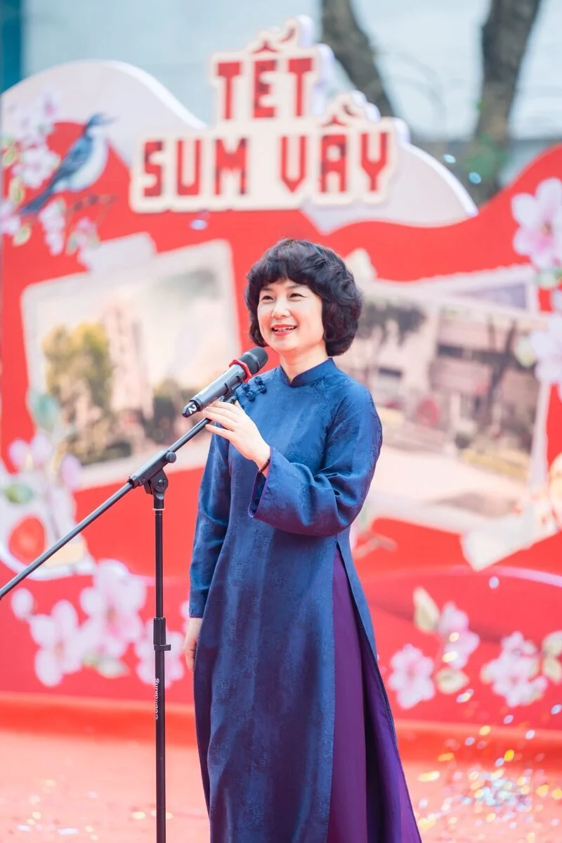 Phát biểu khai mạc chương trình, PGS, TS Phạm Thu Hương – Hiệu trưởng Nhà trường nhấn mạnh ý nghĩa nhân văn của chương trình với mong muốn tái hiện lại không khí tết cổ truyền của Việt Nam và tôn vinh các nét đẹp văn hoá truyền thống của dân tộc Việt Nam trong dịp Tết Nguyên đán. Cô bày tỏ mong muốn mang đến cho sinh viên cảm giác “ấm” của sự sẻ chia, đoàn tụ và sự “đủ” về cảm xúc, năng lượng để sẵn sàng cho năm mới 2026. Đồng thời, thông qua các trò chơi dân gian đầy thử thách, cô cũng nhắn nhủ các bạn trẻ hãy mạnh dạn, kiên trì theo đuổi mục tiêu, bởi chính những bài học trên hành trình ấy sẽ là nền tảng vững chắc để gặt hái thành công. Nhân dịp này cô Hiệu trưởng cũng gửi lời các khách quý cùng toàn thể các viên chức, người lao động, giảng viên, sinh viên trường Đại học Ngoại Thương và gia đình một năm mới hạnh phúc và thành công.