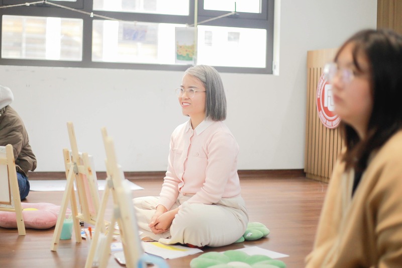 Mở đầu chương trình, các bạn sinh viên tham dự được mời cùng thiết lập một không gian cởi mở – an toàn – tôn trọng – hiện diện, nơi mỗi cảm xúc, mỗi nét vẽ, và mỗi trải nghiệm cá nhân đều được đón nhận, trân trọng, mà không phán xét.